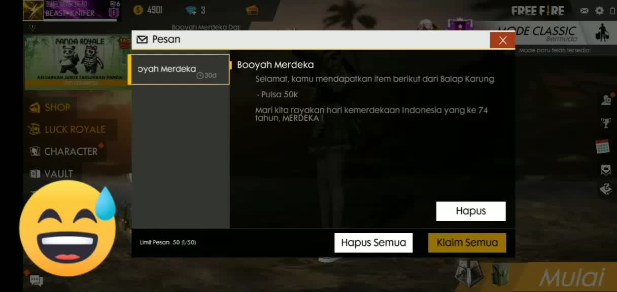 Ga baca ga booyah. Temukan semua informasi free fire mulai dari senjata terbaik tips main update game hingga event berhadiah magic cube dan diamond. Pengen hadiah ulang tahun. Grab weapons to do others in and supplies to bolster your chances of survival. Dengan begitu kalian sudah membantu menyumbang dengan nilai total sebanyak 51 juta rupiah. Peraturan event booyah merdeka ff.