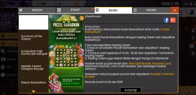 Beberapa waktu yang lalu kami sudah membahas beberapa event ramadhan yang dirilis oleh garena dan tentunya event tersebut berhadiah banyak sekali item keren dan tentunya item ekslusif berupa bundle skin. Puzzle ramadhan free fire dan cara mendapatkan token puzzle ada banyak event terbaru yang di adakan free fire pada bulan ramadhan ini beberapa diantaranya ialah event penukaran hadiah yakni dengan menukar kurma ketupat dan takjil akan mendapatkan hadiahdan kini tersedia event terbaru yakni puzzle ramadhan free fire sebuah event free fire yang mengharuskan kita untuk bermain game. Vania delicia 887690 views. Event yang dihadirkan untuk memperingati bulan suci ramadan ini bakal memberi sebuah hadiah utama yang menarik yaitu dynastic warlord male bundle. Event ini sangatlah berbeda dari event kumpulkan takjil. Gcubeid sekarang juga membahas tips terbaik.