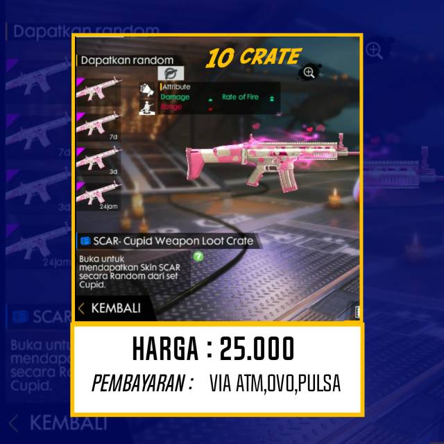 Ketiganya memiliki corak dan tema yang khas. Jika nick susah. Jual crate senjatajasa give free fire. Shopee ronaldo shopee x free fire iklan belanja di shopee shopee garena. Tukarkan segera sebelum masa berlakunya habis. Kamu mau tahu semua stats senjata yang bisa kamu gunakan di free fire.